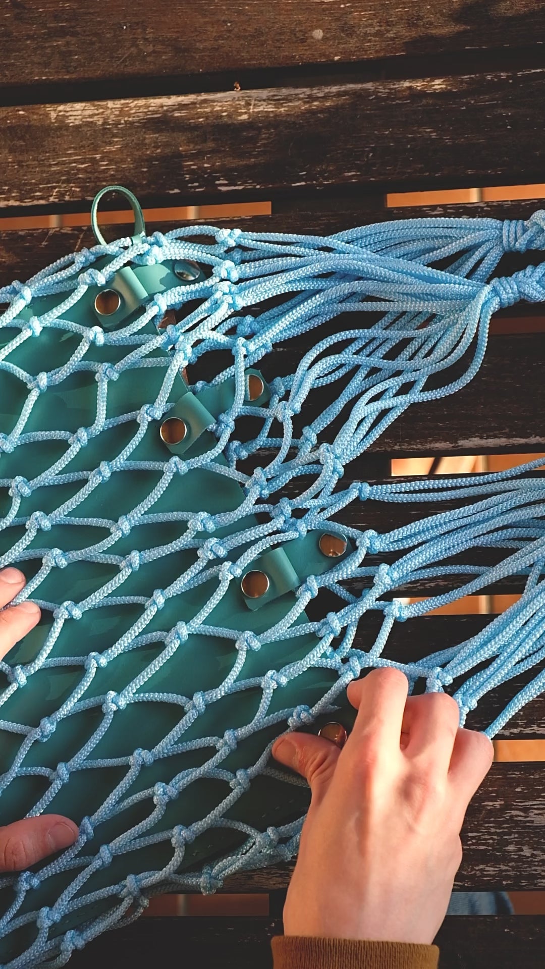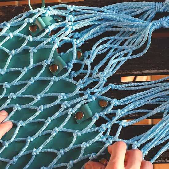 The leather interiors are removable and interchangeable to create different combinations of bags. Removing the leather part also leaves only the mesh bag, perfect as a beach bag or for shopping. The leather part can then be easily reinserted.