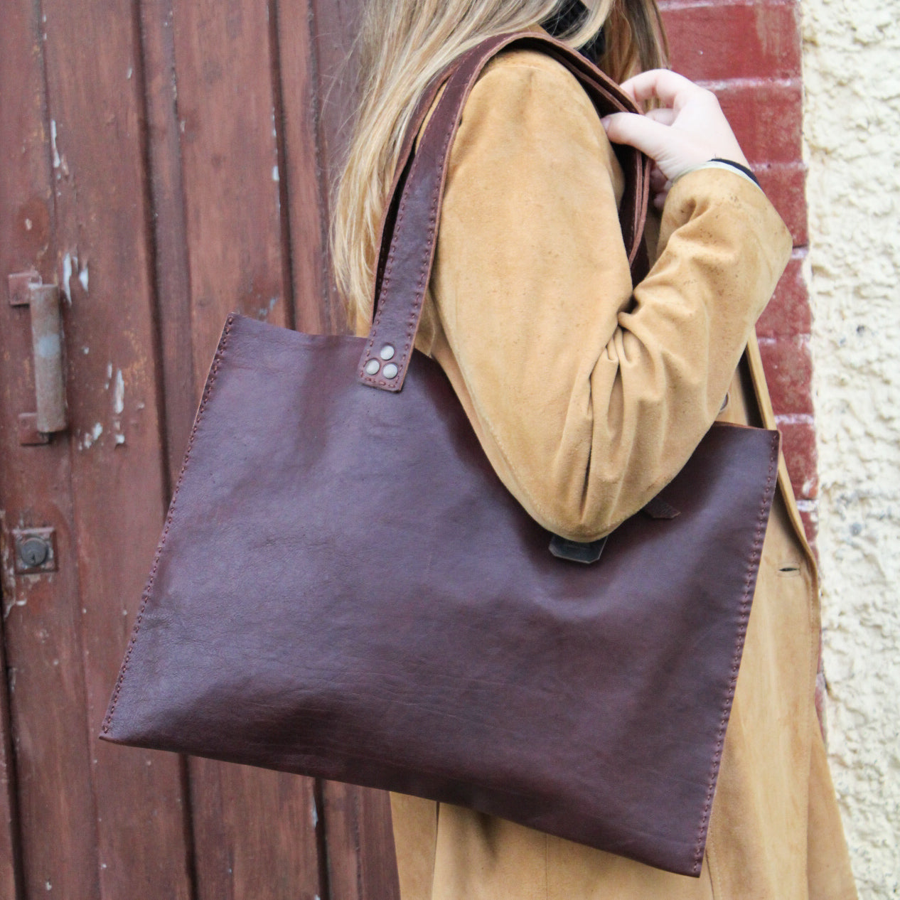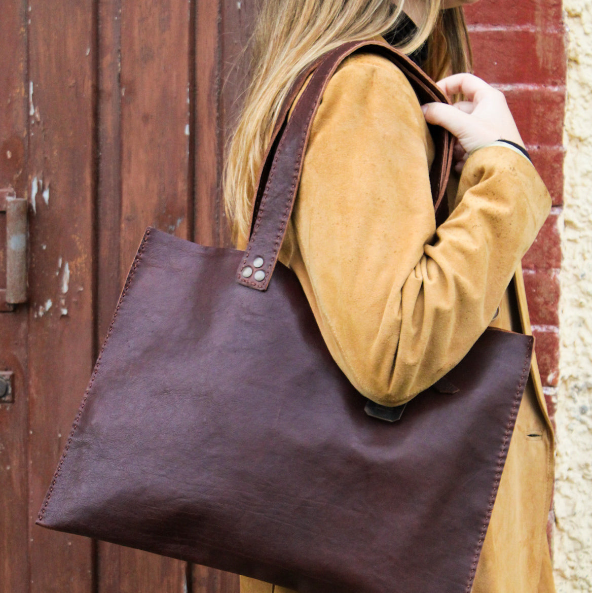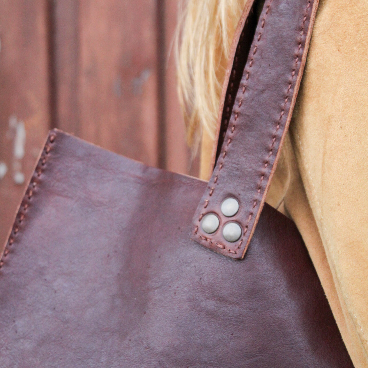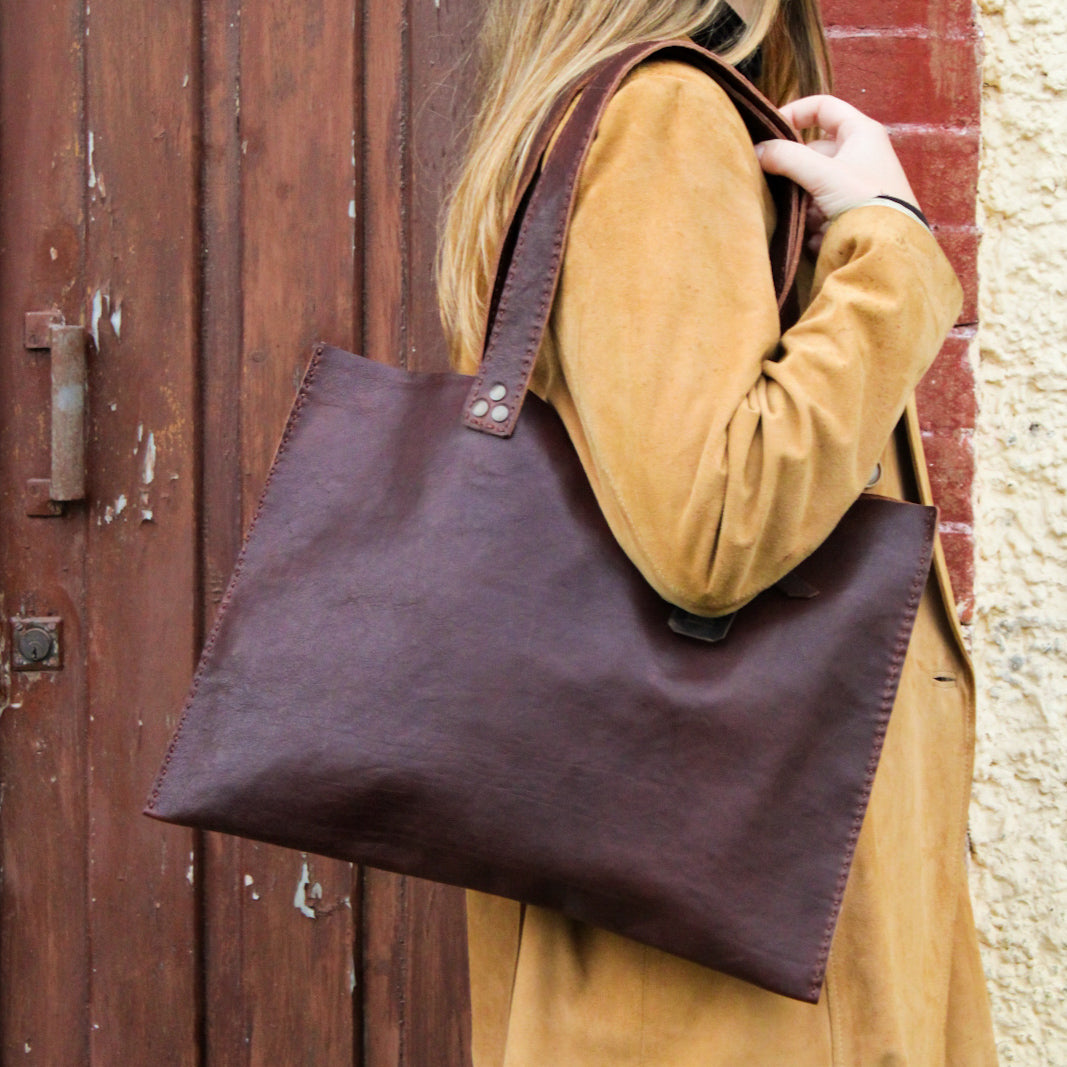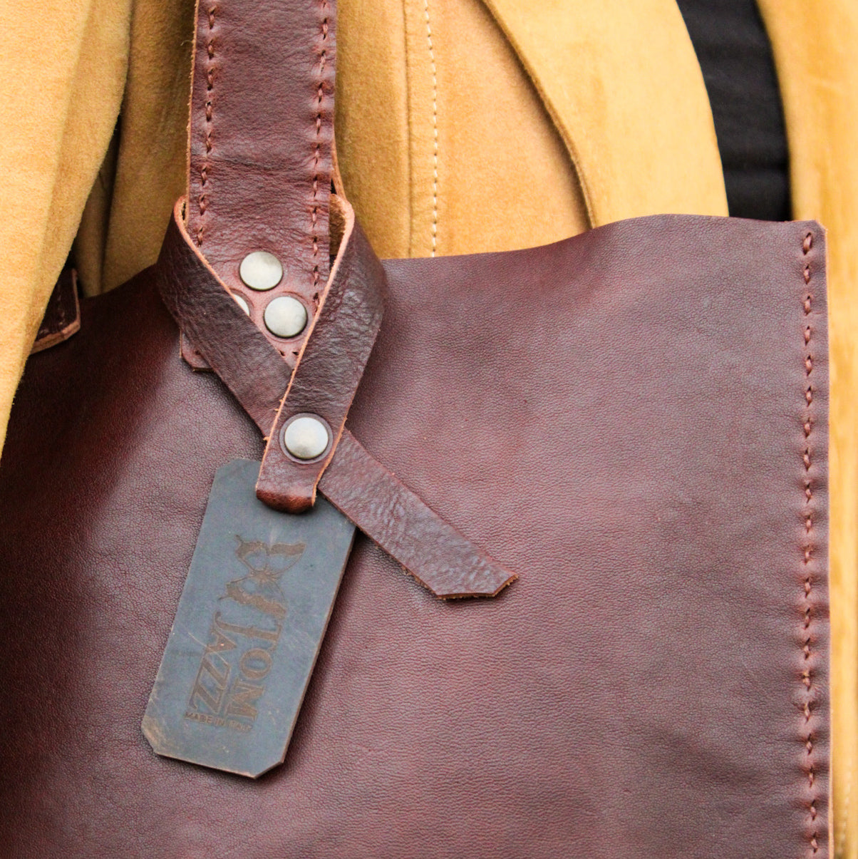 Borsa realizzata in pelle morbida di vitello cucito interamente a mano (ago e filo)